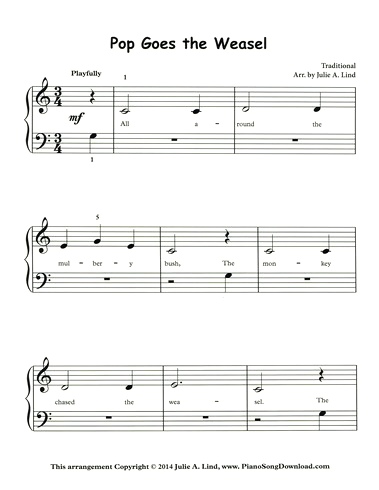 Pop Goes the Weasel - Level 1 | Free easy piano sheet music